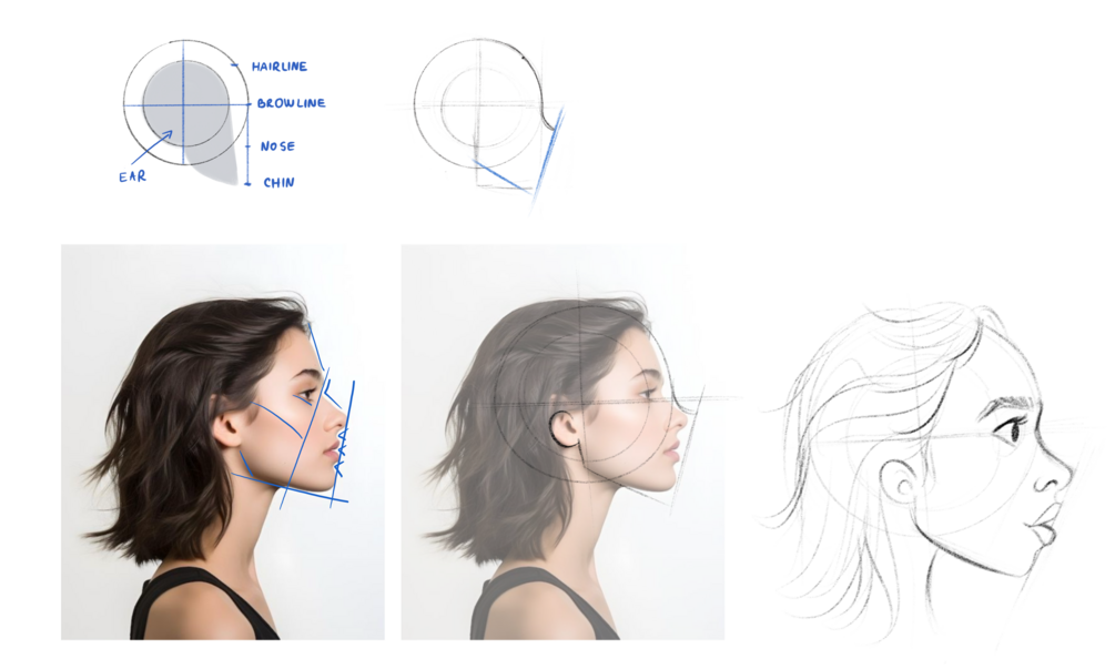 This is a quick guide that breaks down the key steps and things to keep in mind when drawing a face in profile. It's great as a reference while you draw!
